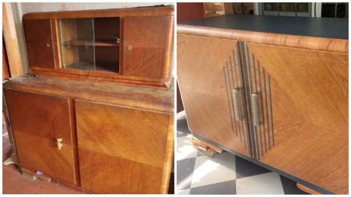 Вот как выглядел буфет до реставрации. Он состоял из двух частей: нижний комод и верхняя тумба. Части разделили на два элемента.