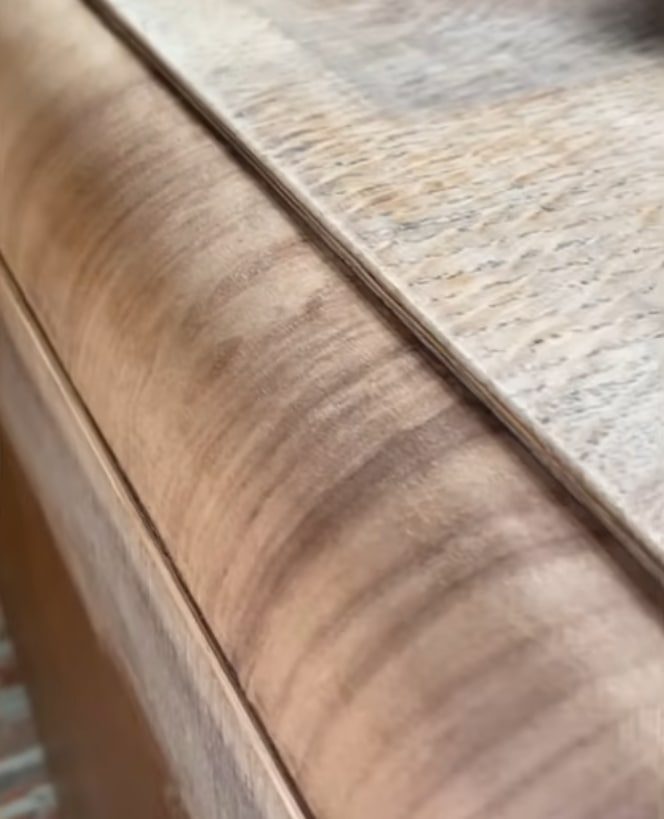 Следом нужно снять старый лак, но так, чтобы не повредить тонкий шпон. Для этого нужно выбрать мягкую наждачную бумагу и аккуратно шлифовать.