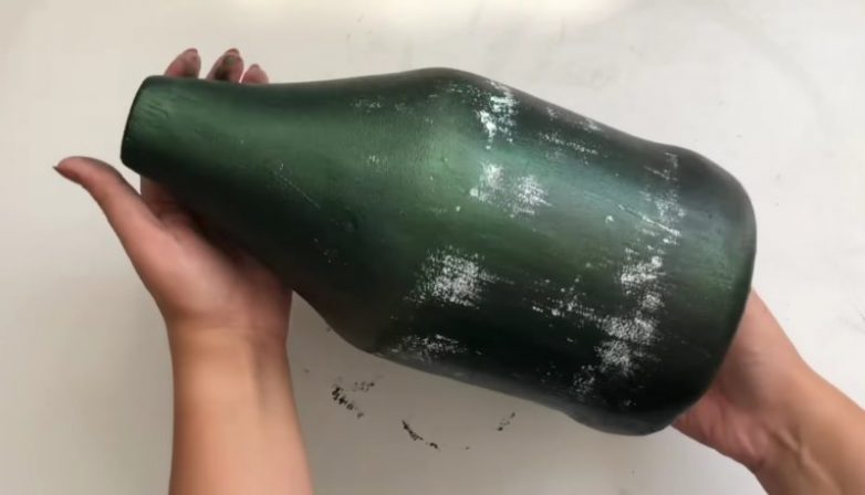 Оформите вазу по собственному желанию: интересный эффект можно создать, используя жесткую кисть и несколько красок темных тонов.