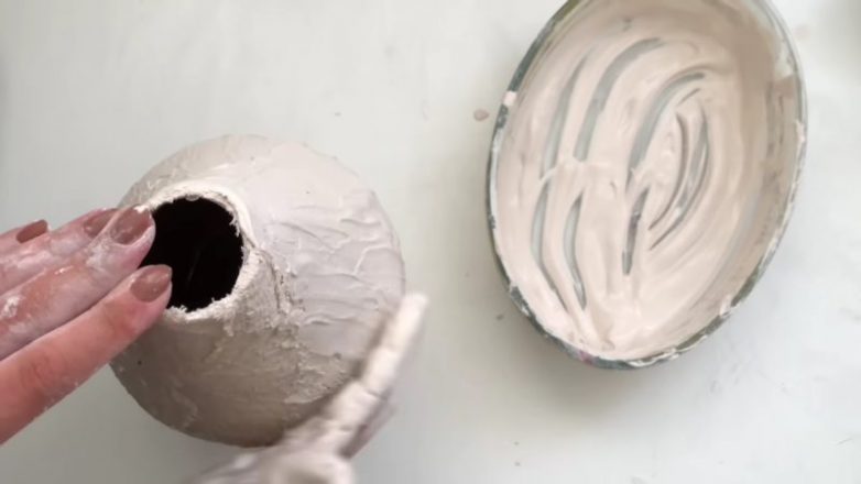 После того, как гипс высохнет, прорежьте горлышко будущей вазы.
