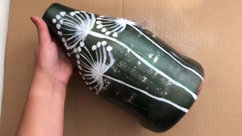 Второй этап: оформление вазыПокройте вазу слоем белой акриловой краски и оставьте до полного высыхания.