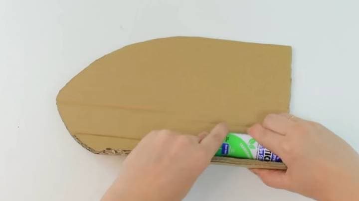 Теперь из того же картона вырежьте два «ушка». Также сверните их в рулон, чтобы картон стал более податливым.