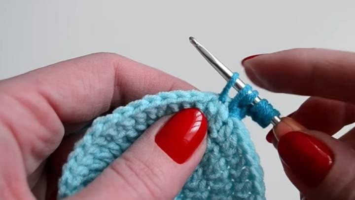Во втором ряду в каждую петлю вяжите 1 прибавку (2 столбика с накидом в 1 петлю).