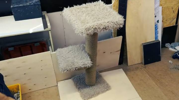 Вы можете сделать конструкцию любой высоты и формы, с домиками/тоннелями или без. Запаситесь необходимыми материалами и сделайте когтеточку-лежанку для котика своими руками.
