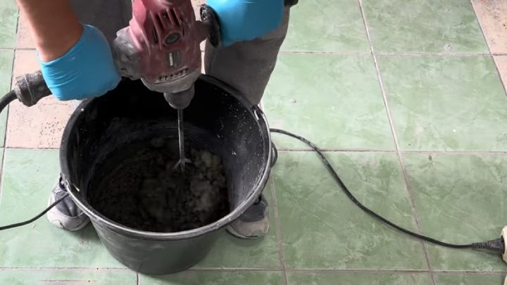 Песок смешайте с цементом и водой, добавьте немного пластификатора, перемешайте, оставьте на 10-15 минут.