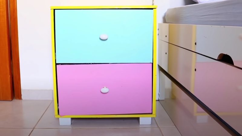 Все изъяны на основной части тумбы необходимо скрыть с помощью шпаклевки. Покрасьте внешнюю и внутреннюю части тумбы краской выбранного цвета. Для создания более интересного эффекта можно использовать краски разных тонов.