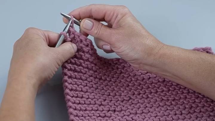 Второй и последующие ряды вяжите просто лицевыми петлями (платочная вязка).