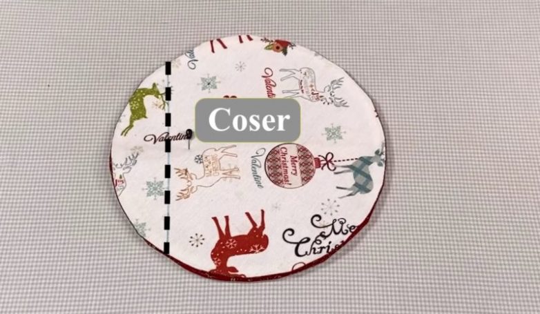 Из хлопчатобумажной ткани двух контрастных цветов вырежьте четыре круглых заготовки (по две каждого цвета) диаметром по 22 см. Из флизелина подготовьте две круглые заготовки диаметром по 20 см и укрепите ими два круга из хлопчатобумажной ткани одинаковой расцветки.