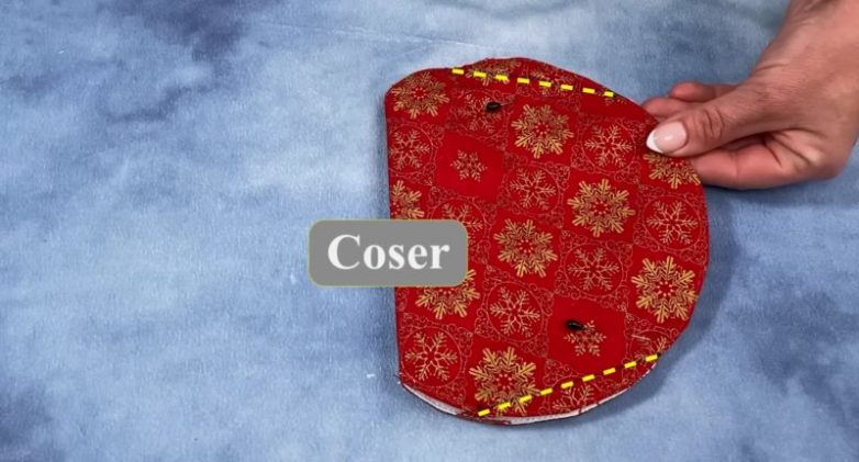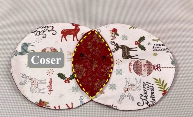 Соедините две подготовленные части, проложив строчку на расстоянии 4 см от края, как это показано на фото.