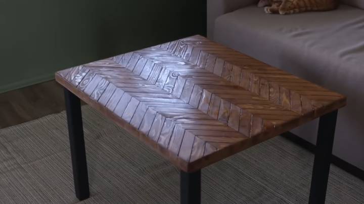 Покройте столешницу воском для дерева, чтобы защитить. Посмотрите на результат: великолепный журнальный столик — простой, но в то же время очень стильный!