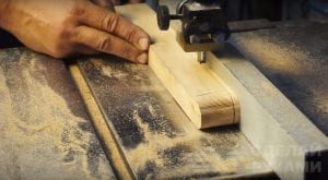 Берем подходящий кусок доски, размечаем и обрезаем по размерам. Закругляем торцы на ленточно-шлифовальном станке. Затем распускаем заготовку на рейки толщиной примерно 4–5 мм. Чтобы сделать комплект из пяти щипцов, понадобится десять реек. Также вырезаем брусочки клинообразной формы. Все подготовленные детали шлифуем, чтобы их поверхность была ровной и гладкой.