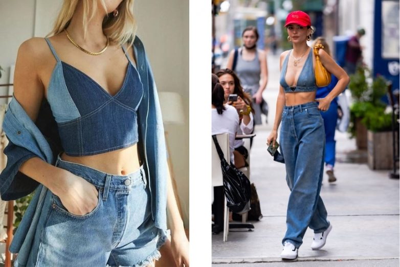 Ещё одна оригинальная идея на ряду с топом. Джинсовый корсет — стильно и со вкусом.