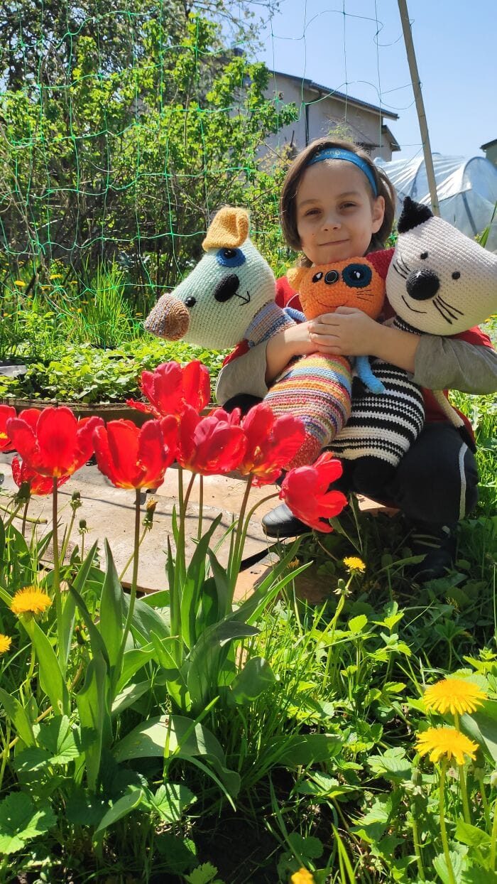 Виолетта вяжет довольно крупные игрушки — в среднем высота каждой достигает 50 см. Таким образом, ее работы могут быть не только игрушками, но и забавной деталью интерьера.