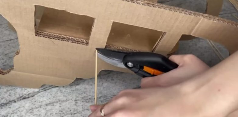 Приклейте к заготовке спинку и также укрепите ее шпажками.