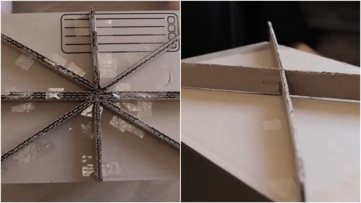 Соберите 8 квадратов из гофрокартона. Скрепляйте картонные детали между собой на скотч или термоклей.