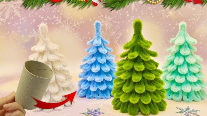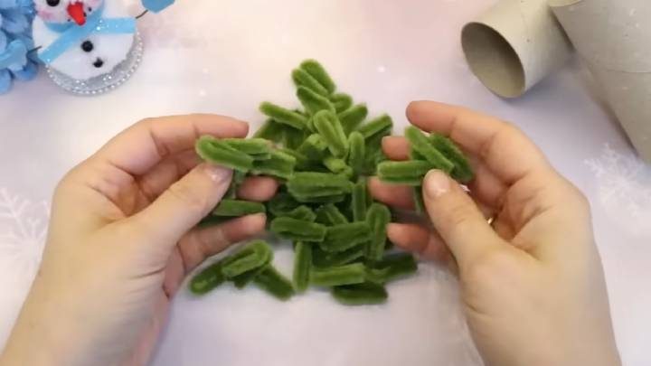 Сделайте великолепную ёлочку, совсем как настоящую, только в миниатюре! Для этого нужен минимум материалов: картонная втулка, клей и синельная проволока.