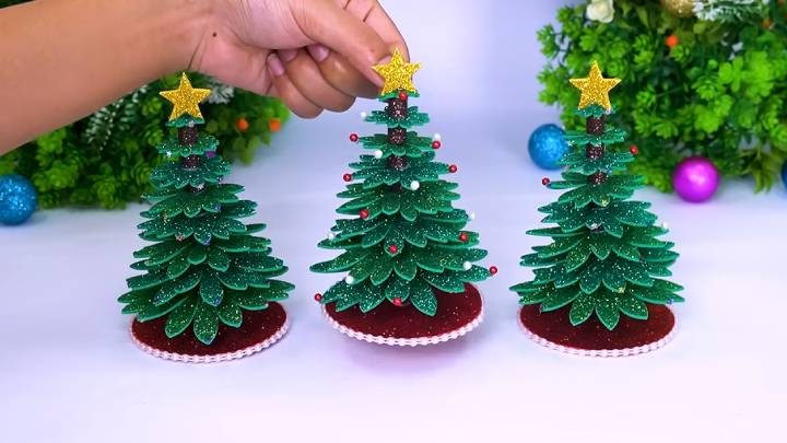 На верх ёлочки обязательно приклейте звезду! Также вырежьте её из фоамирана.