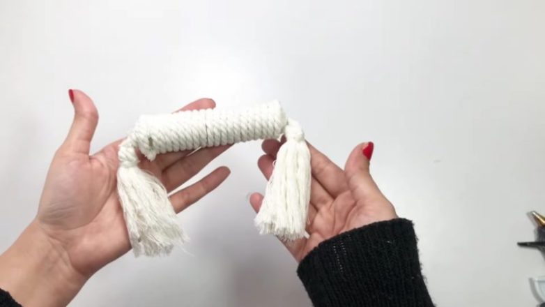 Для изготовления ручек понадобится бамбуковая палочка или отрез трубы меньшего размера. Для декорирования боковой части ручек подготовьте заглушки-кисточки.