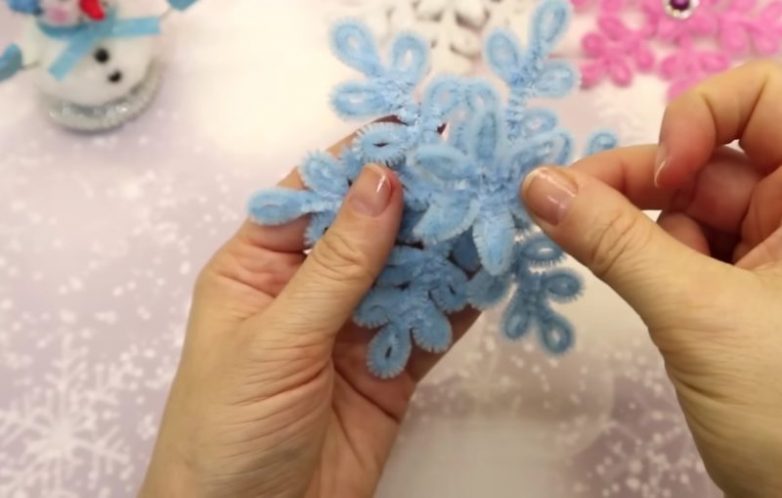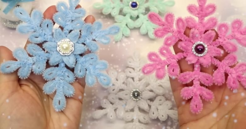 Красивые снежинки из синельной проволоки