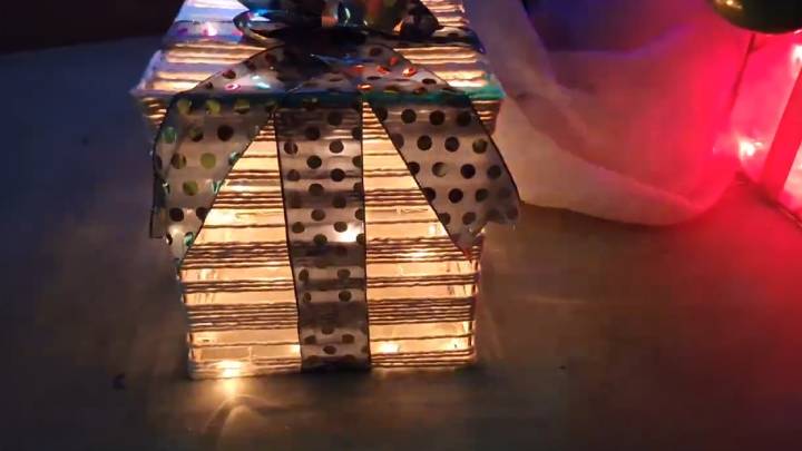 Вот и всё! Такую светящуюся коробочку можно просто поставить как декор под ёлку.