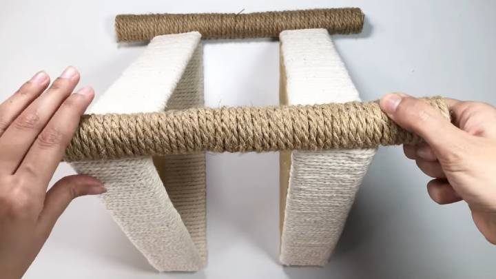 Отверстия закройте верёвкой. Также дополнительно оберните ею ножки органайзера.