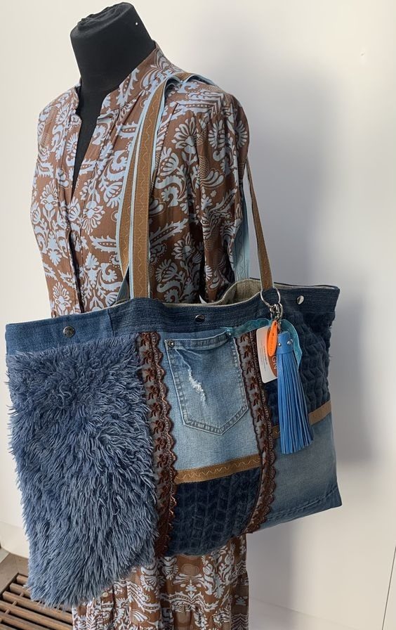 Пожалуй, это самая необычная подборка! Здесь в одной сумке соединяются сразу два, а порой и больше материалов. Например, кожа и джинсы, ткань и пряжа. Оригинально и стильно — оцените сами!