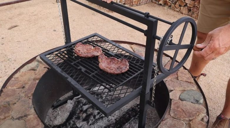 Особенность самодельного барбекю заключается в том, что решетку можно регулировать по высоте для более качественной прожарки мяса.
