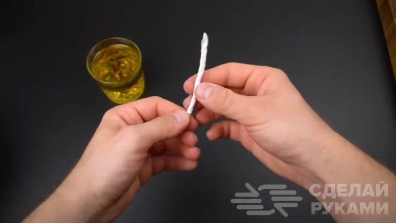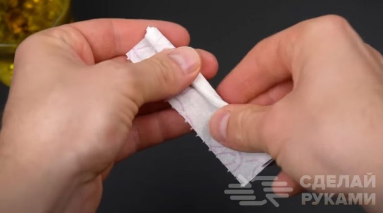 После этого из бумажного полотенца или туалетной бумаги необходимо будет сделать фитиль.