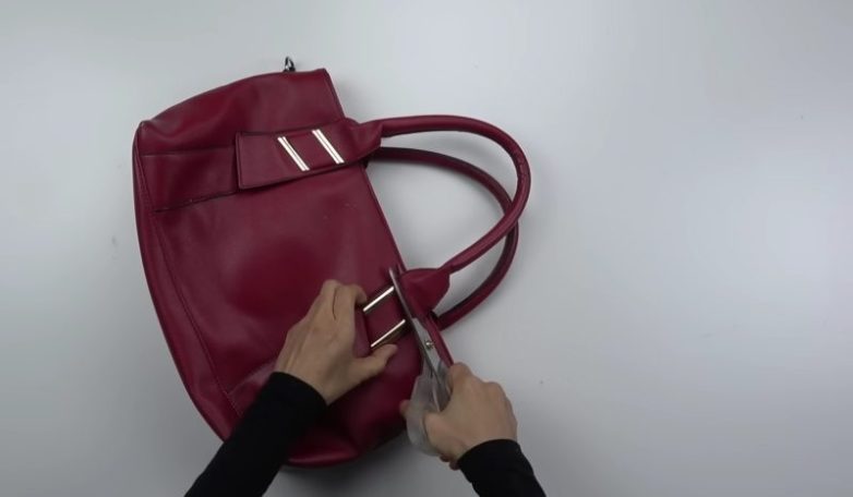 Отрежьте ручки, удалите фурнитуру и молнию, отпорите подкладку у старой сумки.