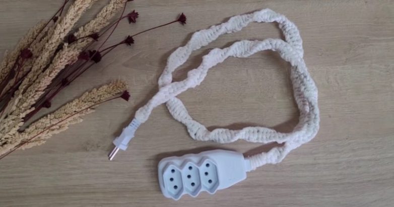 Даже такой привычный бытовой предмет как удлинитель можно превратить в элемент декора для дома. Чтобы удлинитель красиво смотрелся в интерьере, задекорируйте его, используя простую технику макраме.