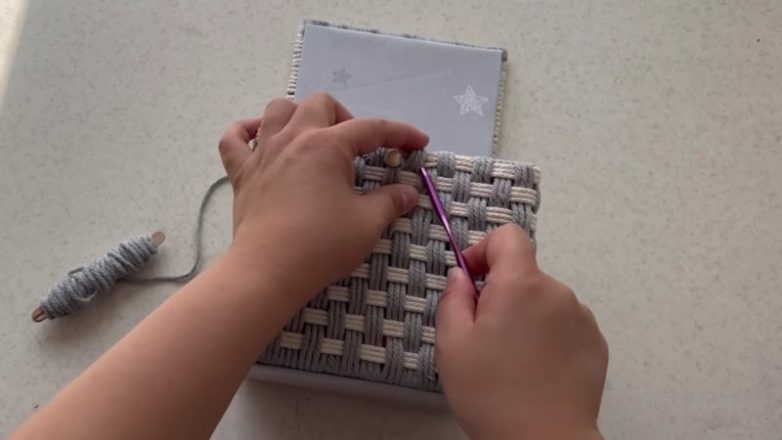 Продолжайте плетение в шахматном порядке, пока не будет оформлена вся коробка.