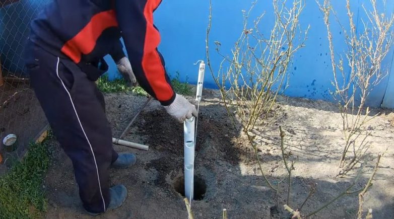 Первым делом необходимо будет разметить участок и затем пробурить в земле лунки подходящего диаметра и на нужную глубину. Для этой цели лучше всего использовать садовый бур, который можно изготовить из пильного диска.После этого отрезаем пластиковые трубы нужной длины, которые будут использоваться в качестве опорных стоек.