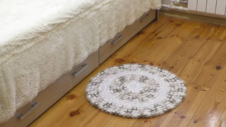 Благодаря пушистой пряже из старого полотенца получился шикарный коврик, который выглядит очень дорого и изысканно! Постелите его в спальне или ванной. Необыкновенно, красиво, стильно!