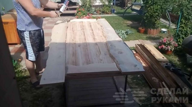 Для декорирования понадобится старая необрезная доска. Чем кривее она будет, тем лучше будет визуальный эффект. Из основного инструмента для работы потребуется электролобзик, «шурик» и шлифмашинка.