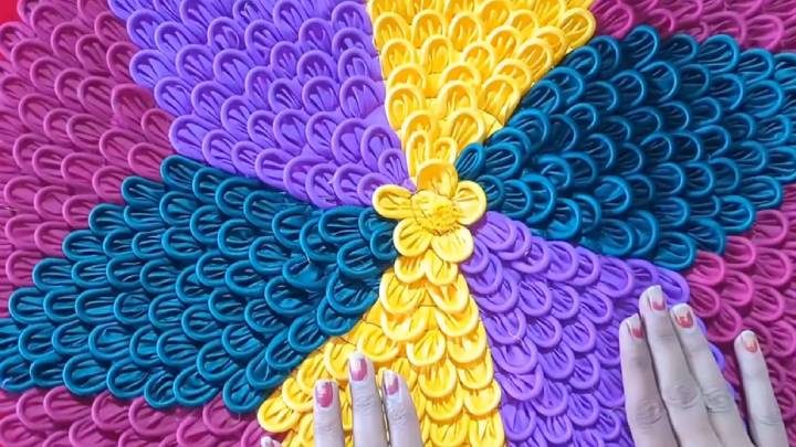 Получился милый коврик из остатков ткани — яркий, стильный, необычный! Используйте технику «Лепестки» для своих собственных проектов!