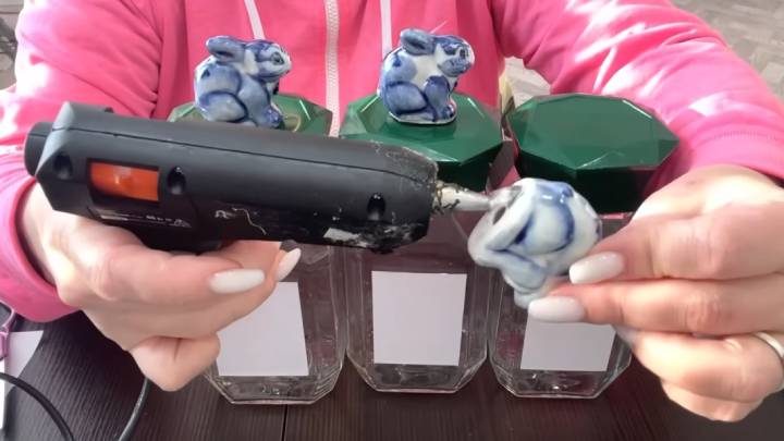 По желанию можно добавить декор. Приклейте фигурки на крышки (этот шаг можно пропустить).
