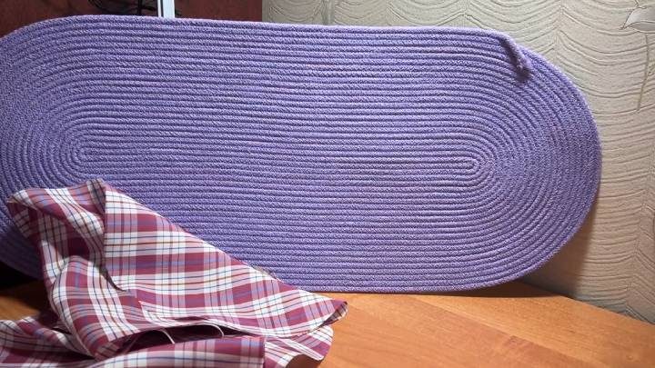 Продолжайте закручивать и прошивать шнур зигзагом. Не натягивайте шнур, а позвольте ему плавно и ровно скользить во время шитья. У вас должна получиться заготовка с размерами 22*54 см. Подготовьте тонкую ткань для подкладки.