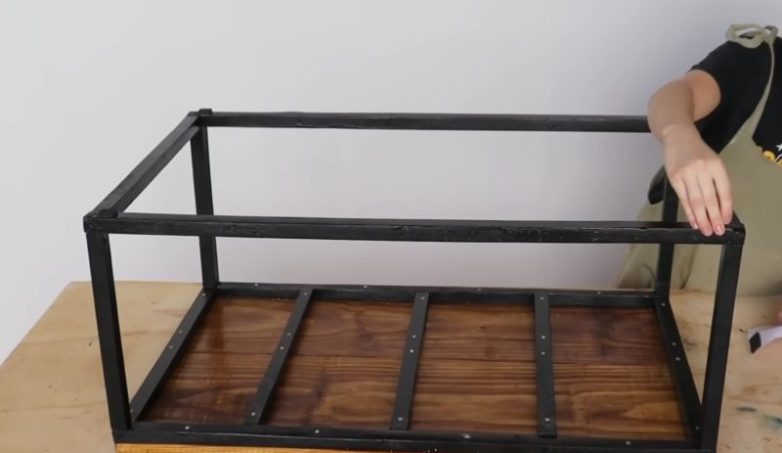 Покрасьте каркас меловой краской черного цвета в несколько слоев с промежуточным просыханием краски. Для защиты каркаса от повреждений обработайте его слоем защитного лака.