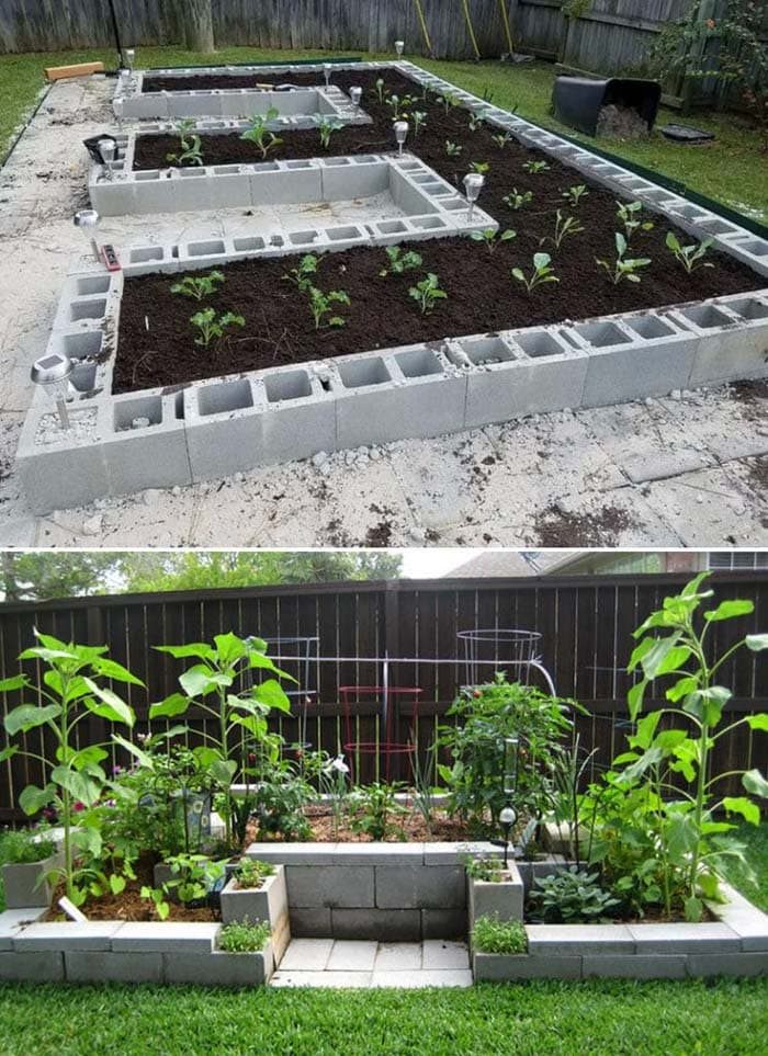 Высокие грядки из кирпича, бетона или шлакоблоков