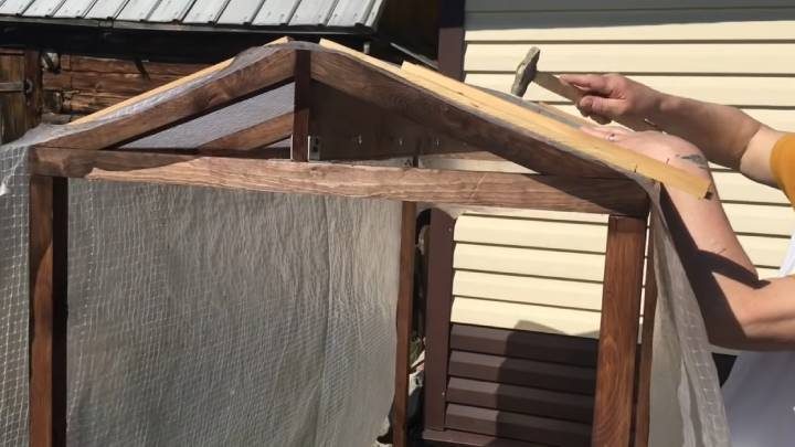 А к доскам на крыше привязать верёвки и сделать опору! Огурцам очень тепло и комфортно в таком чудесном домике.