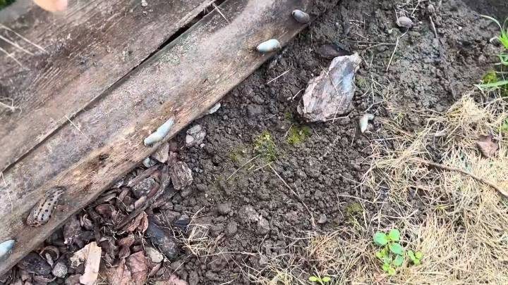 Под доски можно положить картон. Минус таких дорожек — недолговечность и, конечно же, появление слизней. Однако в этом есть и небольшой плюс: вы точно знаете, где собираются все брюхоногие моллюски вашего участка! Поэтому их легко удалить вместе с икрой (яйцами): просто приподнимите доску, и все слизни как на ладони.
