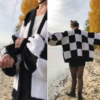 Прекрасный кардиган оверсайз с шахматным узором! Это легко и по силам каждому.
