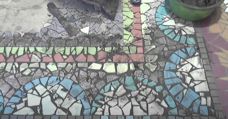 Чтобы приклеить битую плитку к основанию, можно использовать разные клеевые составы. Например, отлично подойдет цементный белый клей, который предназначен для укладки керамической плитки.Если вы будете делать мозаику на улице, то необходимо убедиться, что клей обладает противоморозными свойствами.