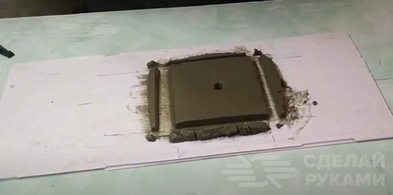 Склеиваем все детали с помощью скотча, после чего заливаем цементно-песчаным раствором (соотношение цемента и песка 1:3).