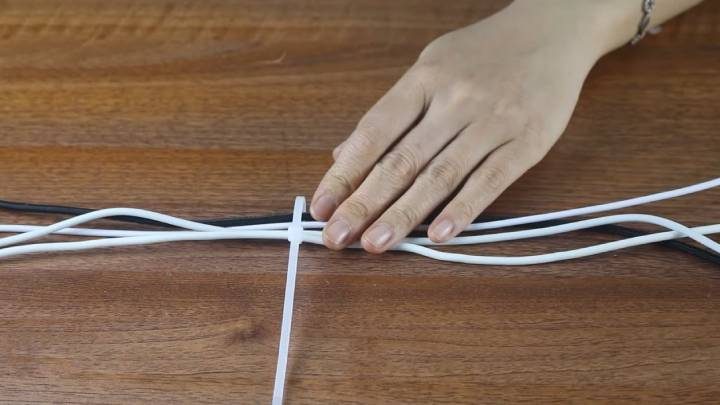 Если у вас беспорядок в проводах, решите проблему легко и просто с помощью кабельных стяжек! Сначала соедините все провода одним хомутом.