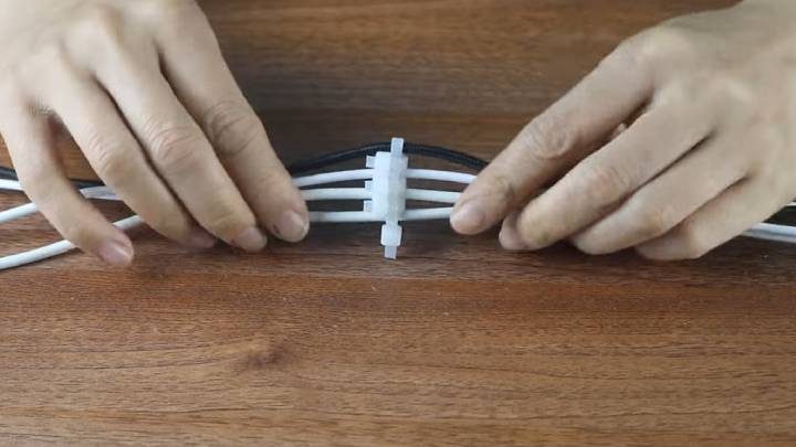 Затем каждый провод отделите, закрепив между ними стяжки. Обрежьте лишний пластик. Теперь провода разделены и больше не запутаются!