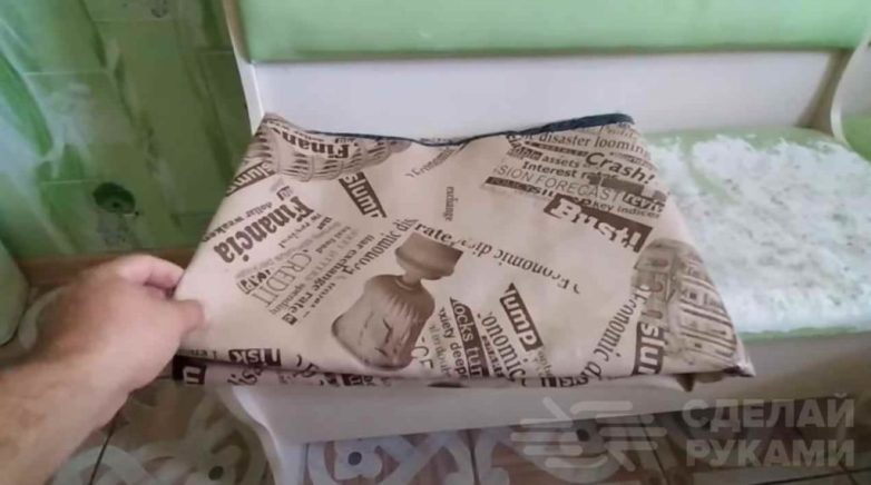 Если что-то осталось непонятно, вы можете посмотреть пошаговый процесс перетяжки кухонного уголка на виде.