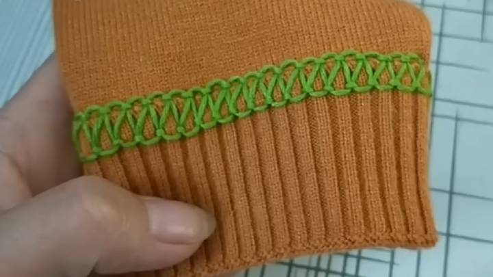 Этот декоративный шов состоит из аккуратных треугольников и полностью скрывает край манжета! Красиво оформленный край + укороченный рукав.