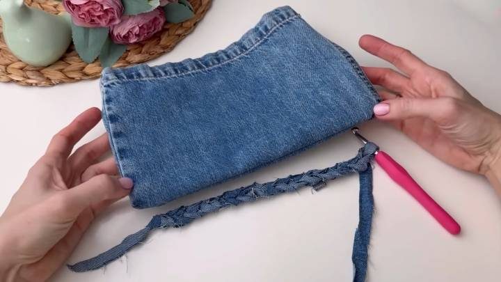 Скорее доставайте старые джинсы, которые пылятся в глубине шкафа, и переделайте их в невероятно красивую вещицу! Всё очень просто и вместе с тем увлекательно. Помимо джинсов, вам необходимо подготовить крючок для вязания подходящего размера.