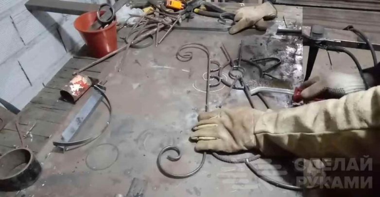 Первым делом необходимо будет изготовить из арматуры и стального кругляка основные детали.Держатель для горшков автор решил сделать в виде котика, поэтому надо будет сделать части тела животного: голову, туловище, лапки, уши и хвост. Также надо изготовить основание.